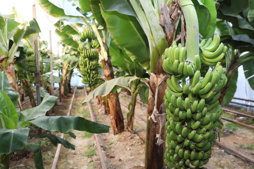 Айта кетсек, жылыжайда бананнан бөлек папайя, лимон, апельсин, мандарин, кофе және питайя секілді экзотикалық жемістерді жерсіндіру жұмыстары жүргізілуде. Өсімдіктер жылыжай жағдайында өсірілгендіктен, оларға қажетті температура мен ылғалдылық тұрақты түрде сақталады. Соның нәтижесінде алынған өнім экологиялық таза әрі сапалы болып келеді.